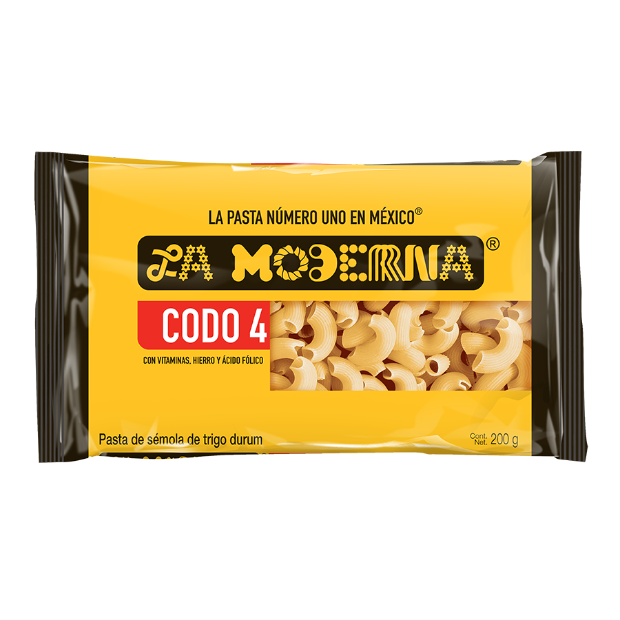 - Paquete con 4 piezas de Pasta Codo Moderna de 200 gr cada una