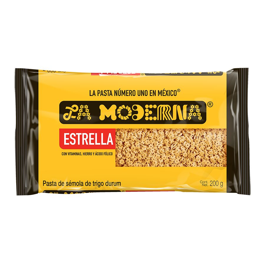 Prepara sopas deliciosas con la Pasta Estrella Moderna en su presentación de 200 gramos. Su forma pequeña y textura perfecta la hacen ideal para caldos, sopas tradicionales y recetas caseras que encantan a toda la familia. Un básico en cualquier cocina mexicana.