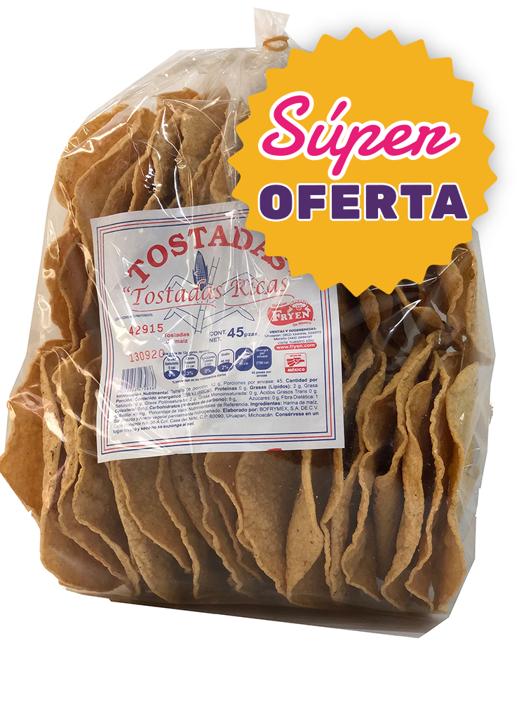 Disfruta del sabor auténtico y crujiente de la Tostada Tostarica paquete con 45 piezas, perfecta para acompañar tus platillos mexicanos favoritos como pozole, ensaladas, guacamole, ceviche o frijoles refritos. Hechas con maíz de calidad, estas tostadas tienen el equilibrio ideal entre textura firme y sabor tradicional.