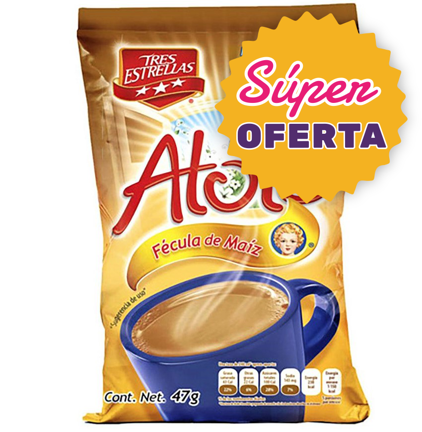 - Atole sabor chocolate Tres Estrellas en presentación de 50 gr