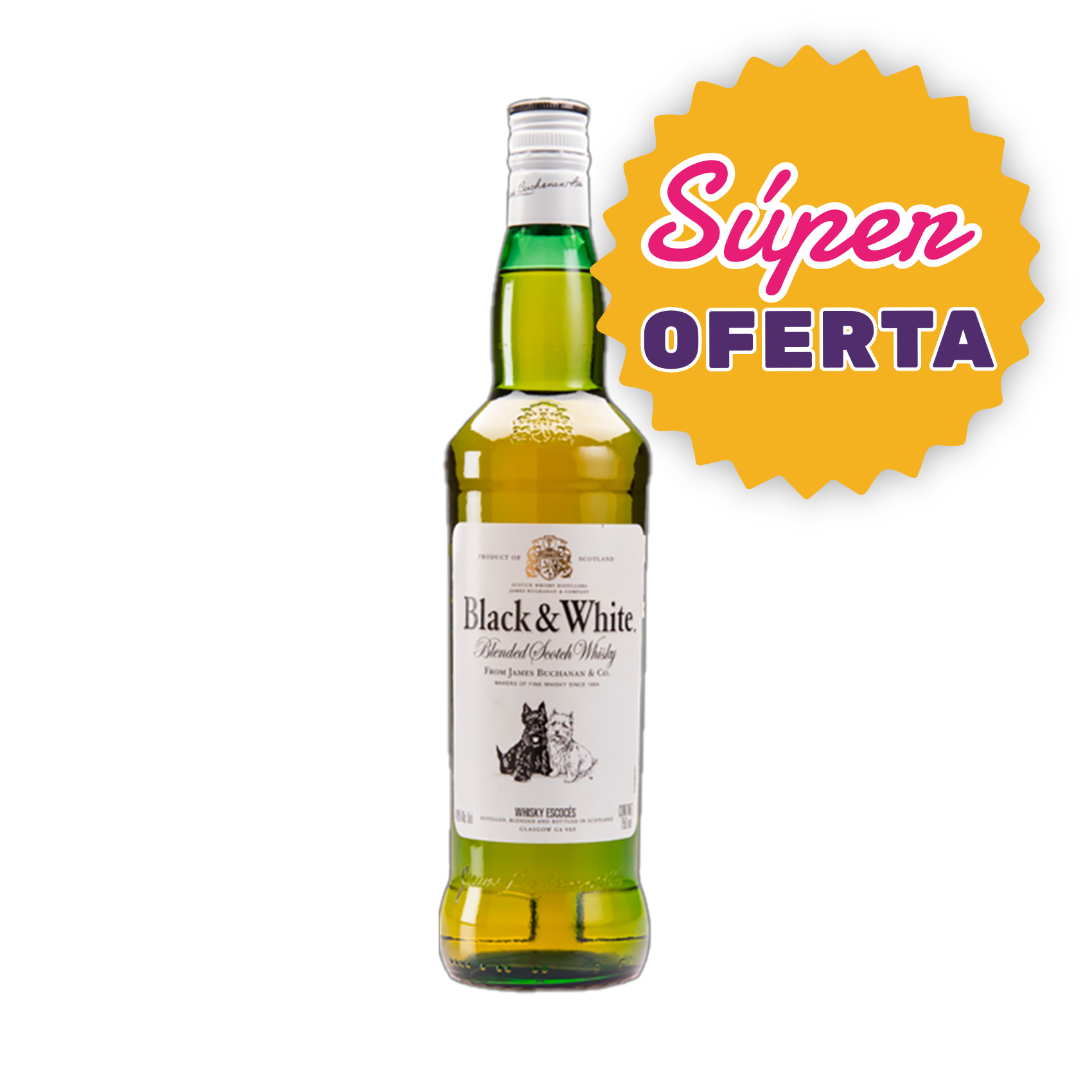 Disfruta la elegancia del clásico Whisky Escocés Black & White en su presentación de 700 ml, reconocido por su sabor suave, ligeramente dulce y con un toque ahumado. Perfecto para tomar solo, con hielo o como base para cócteles.